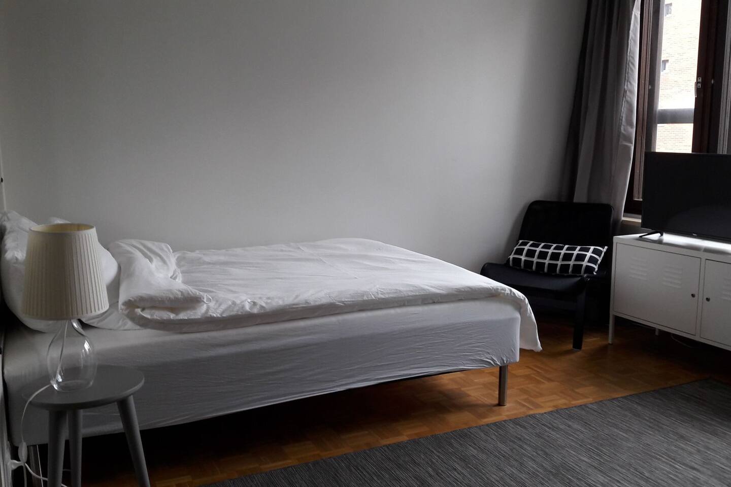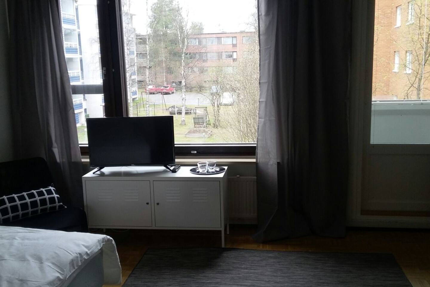 Modern and cozy studio apartment (main room, kitchen and bathroom with washing machine) located in city center. All services (shopping mall, Korundi, Arktikum, bus stop to Santas Village, restaurants) within few minutes walking distance. Linen and towels are included. Best with two persons, but can accommodate four persons. One double bed 140 cm and an convertible sofa. Fully equipped kitchen. Shower, glazed balcony, free wifi. No parties.