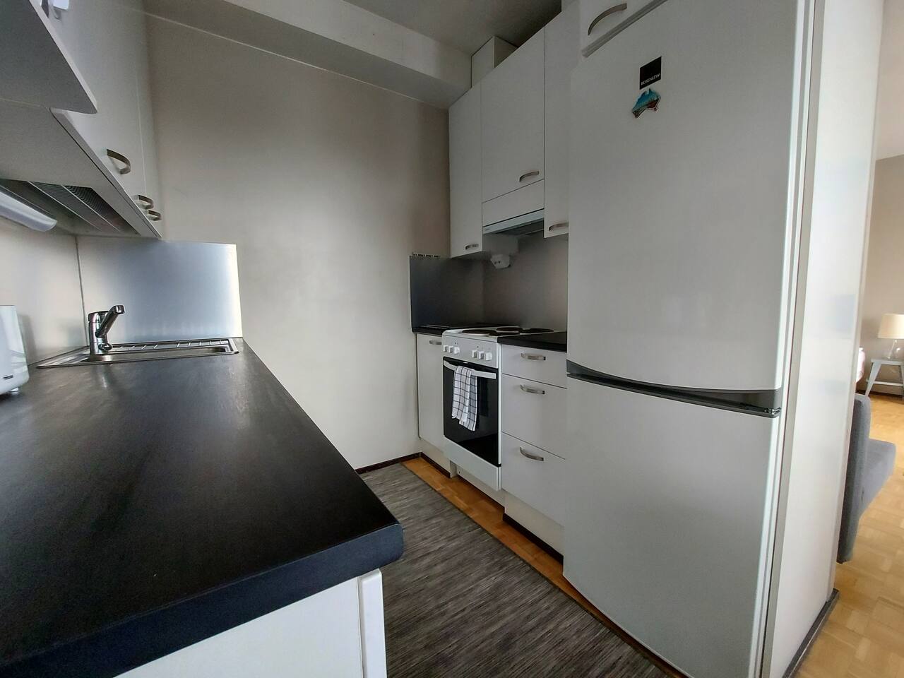 Modern and cozy studio apartment in top floor (main room, kitchen and bathroom with washing machine) located in city center. All services (shopping mall, Korundi, Arktikum, bus stop to Santas Village, restaurants) within few minutes walking distance. Linen and towels are included. Best with two persons, but can accommodate four persons. One double bed 140 cm and a convertible sofa. Fully equipped kitchen. Glazed balcony, free wifi. No parties.